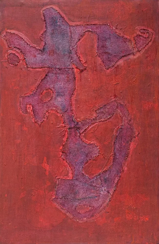 human, 2023 mixed flax technics on wood 64 cm x 83 cm SOLD
